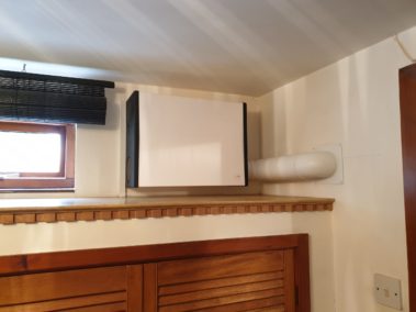 The unit can be mounted in another room or cupboard if necessary, and we use white pipework to take the air to where it needs to be for optimum radon reduction. These points can be discussed and decided at the survey stage of our visit to you